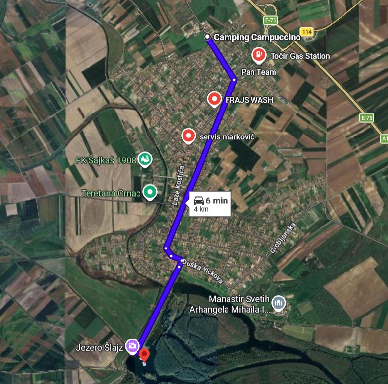 Nedaleko od kampa (na oko 4 km udaljenosti) počinje čuveni Koviljski rit, tu su i šlajz i manastir Kovilj. Malo dalje, Arkanj. Obezbeđeni su i kontakti za iznajmljivanje malih čamaca ukoliko neko poželi i da plovi osim da kampuje ili da se švrćka ili biciklari po Kovilju.