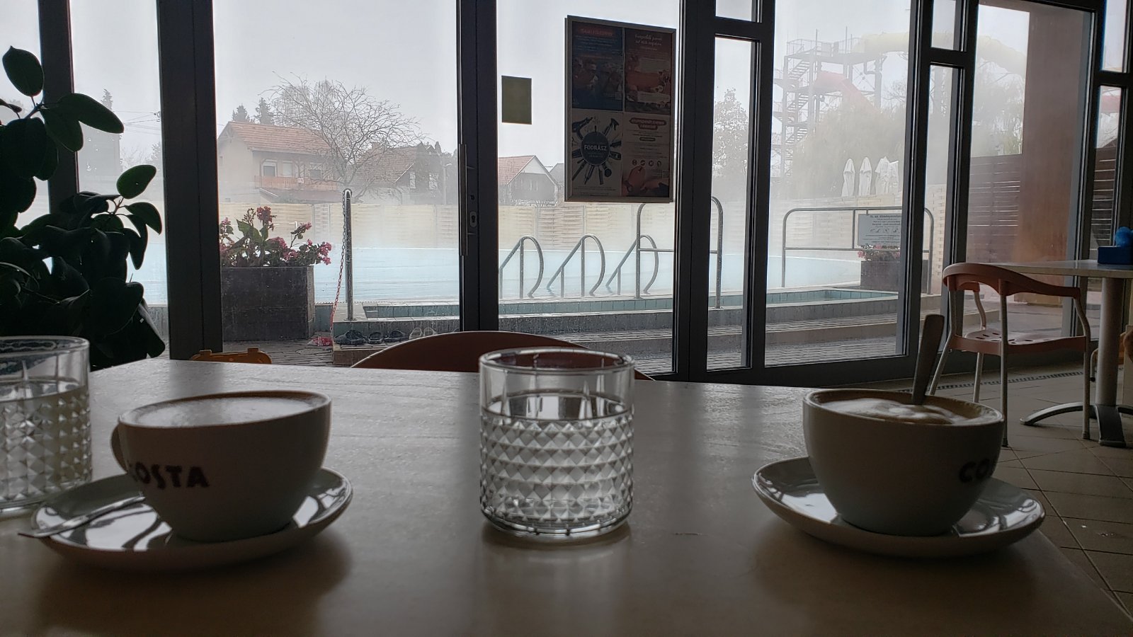 Posle ručka, kafa u termama, pa na još jedan oporavak termalnom vodom od stresa i ludnice u kojoj živimo.